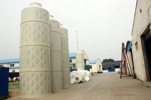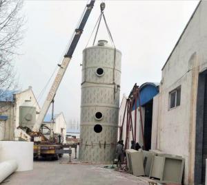 溫州客戶(hù)噴淋塔安裝現(xiàn)場(chǎng),酸霧廢氣由風(fēng)管引入凈化塔,經(jīng)過(guò)填料層,廢氣與氫氧化鈉吸收...